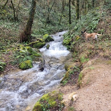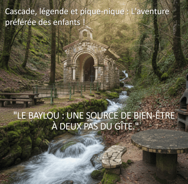 "L'accÚs est trÚs simple : traversez le pont et garez-vous juste aprÚs sur votre droite, au niveau de la maison qui longe le ruisseau. Il ne vous restera alors qu'à faire quelques pas sur une petite montée pour arriver enfin à la chapelle et découvrir la source du Baylou."